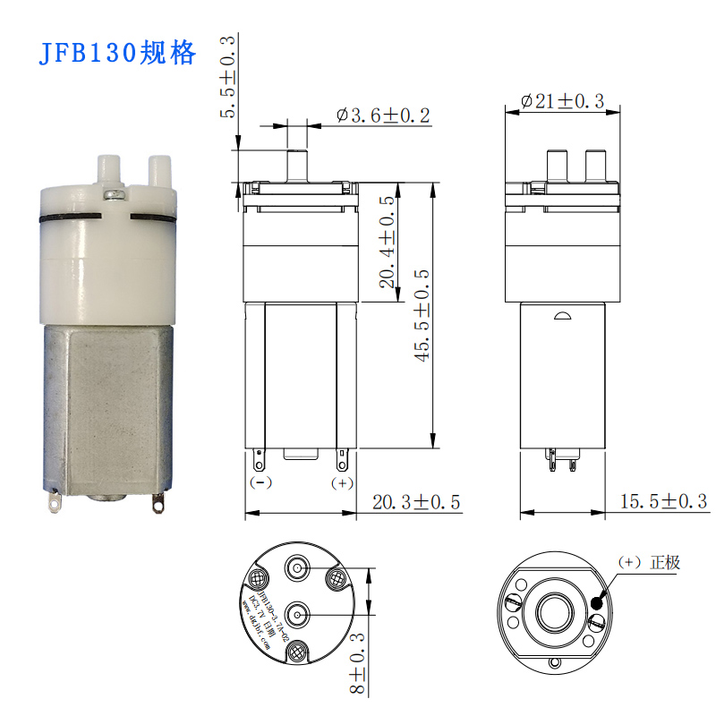 型号:JFB130 泵直径21*长20mm 电机直径15.5mm 主体长45mm 气嘴长5.5mm 气嘴直径3…